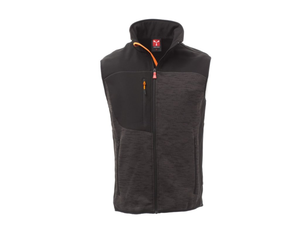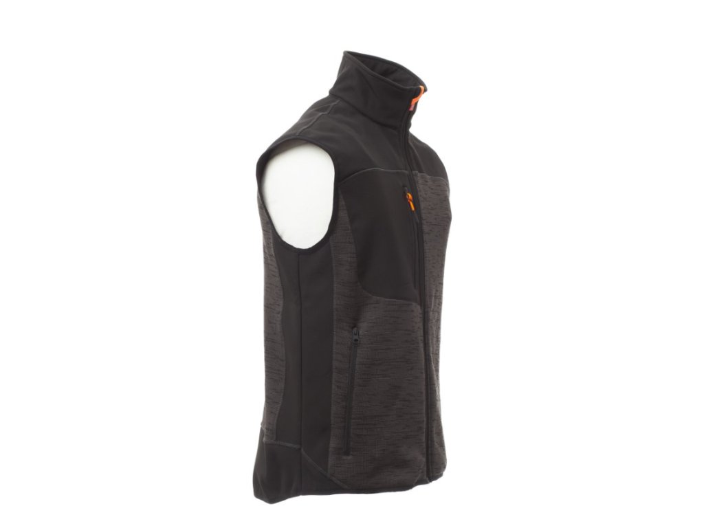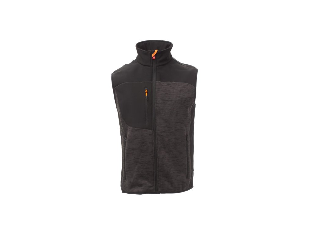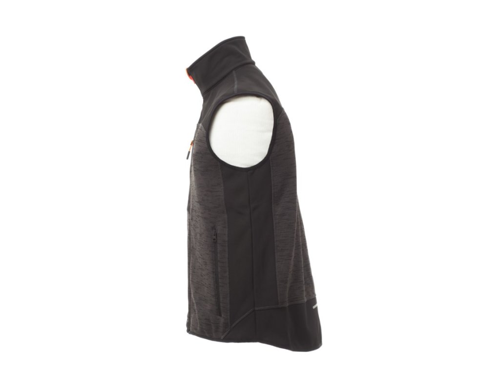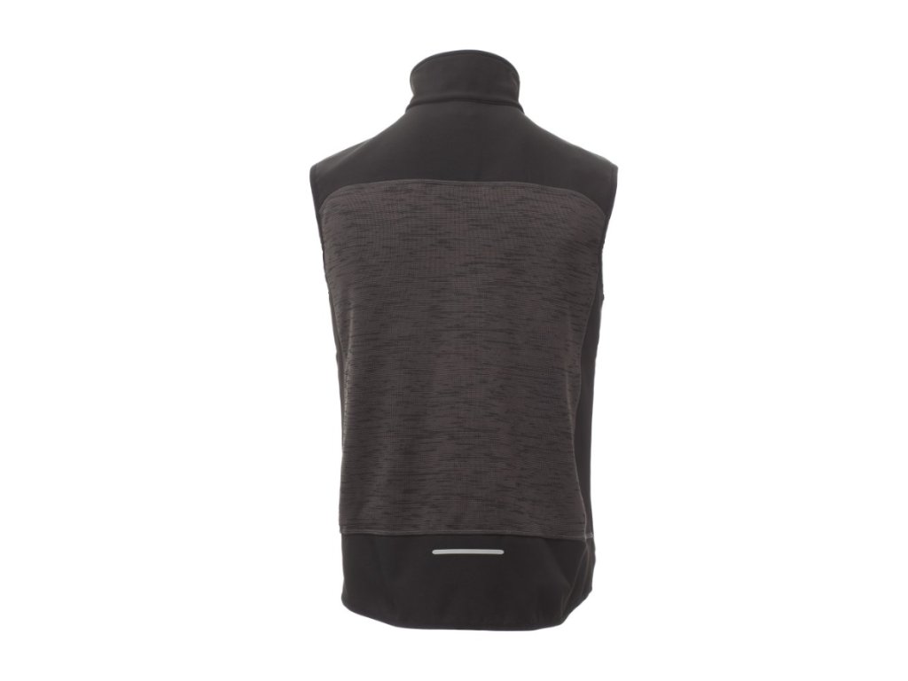 Pánská ergonomická vesta, která spojuje funkčnost, styl a pohodlí. Hlavní materiál tvoří pružný úplet doplněný kontrastními vsadkami z černého softshellu, které zvyšují odolnost a přispívají k modernímu vzhledu.